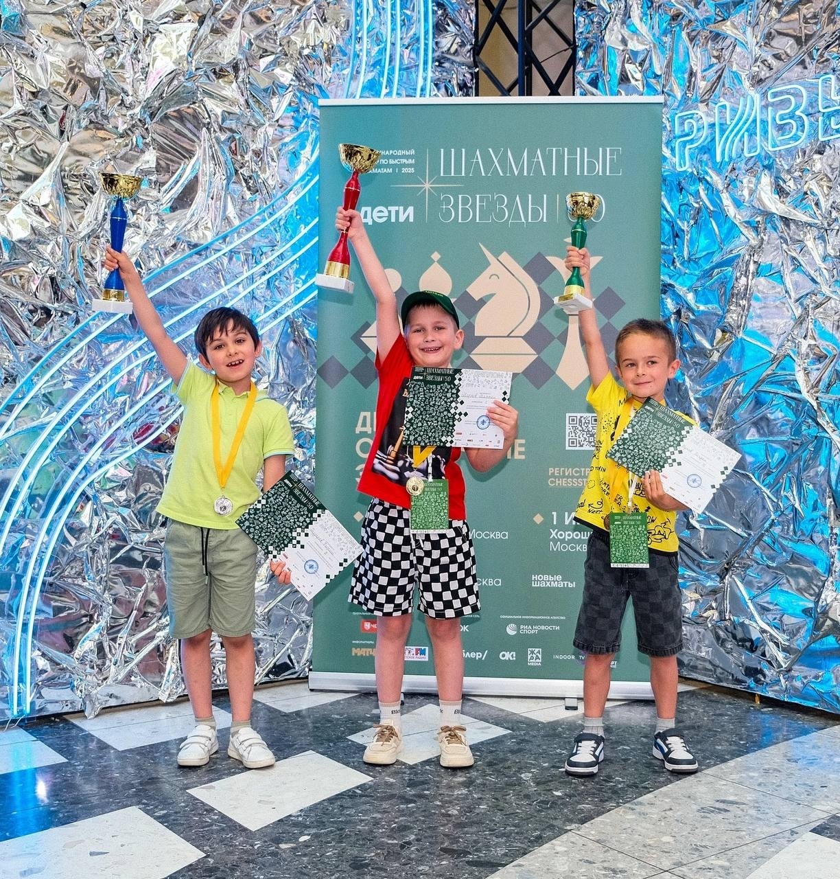 - 1 и 8 июня проходили отборочные этапы международного турнира по быстрым шахматам «Шахматные звёзды 5.0». Заняв второе место в своём зачете до 9 лет (девочки/мальчики), Храпач Анастасия и Газдаров Георгий вышли в финал!